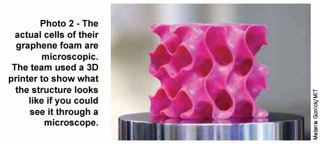 Researchers at MIT, using a similar approach, created Foam Graphene which is 10 times stronger and10 times lighter than steel. How these researchers did their magic and the possible future uses of what they created is fascinating. Click the "MIT News" image to watch a YouTube Video on foam graphene.